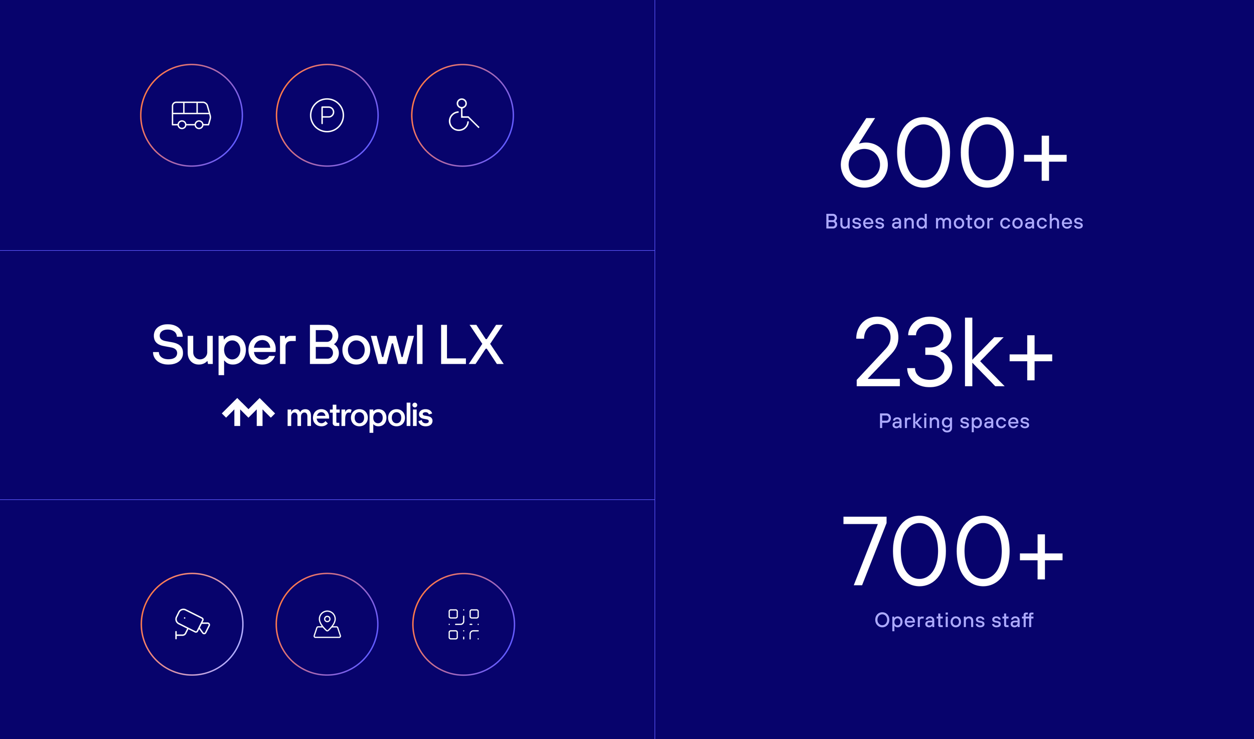 Metropolis’ GAMEDAY team — a specialized group managing the high-stakes logistics, guest services and transportation for the world’s premier live events — has supported Super Bowl transportation and logistics continuously since 1999. The team brought decades of familiarity with the NFL’s operational requirements into planning for this year’s event.